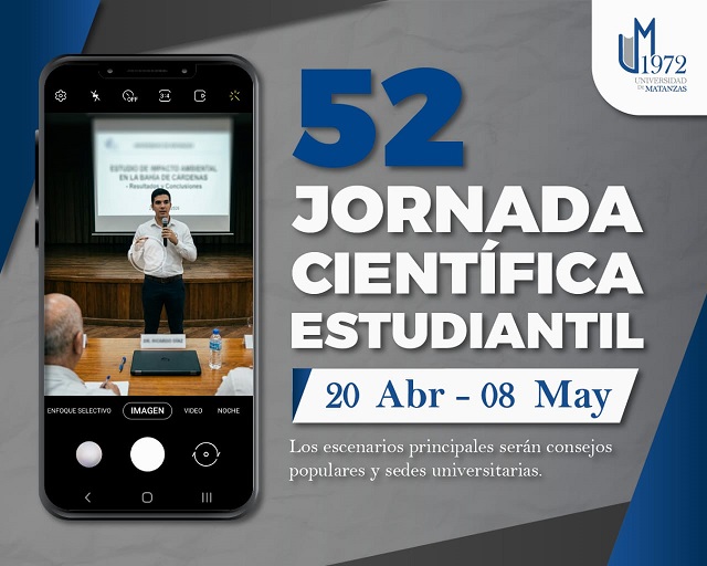 “La FEU y la Dirección de Investigación y Posgrado de la Universidad de Matanzas convocan a los universitarios yumurinos a participar en la 52 Jornada Científica Estudiantil (a nivel de base), dedicada al Centenario del Comandante Fidel Castro Ruz, que se desarrolla desde el 20 de abril hasta el 8 de mayo. Esta jornada fomenta,…